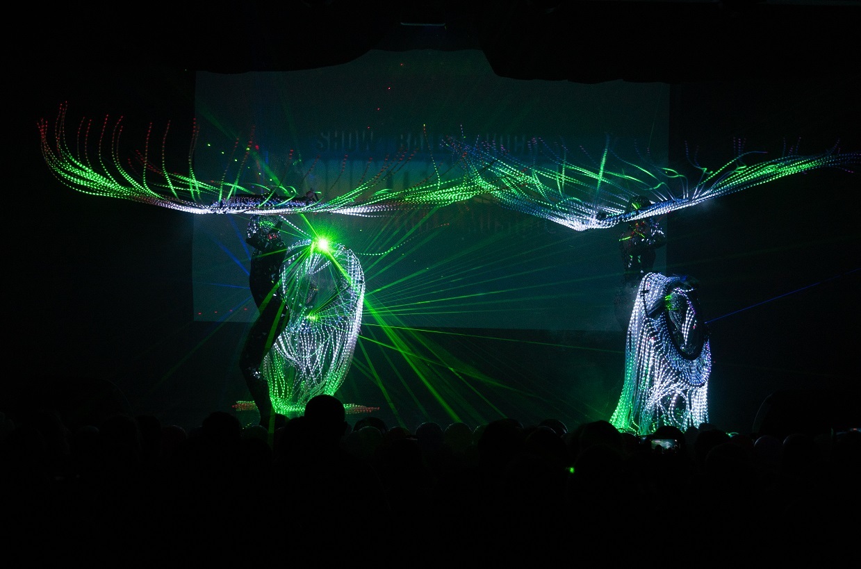 - лазерные лучи (более сотни на каждом костюме) создают эффект преломляющихся лучей, которыми одаряет северное сияние жителей приполярных регионов;