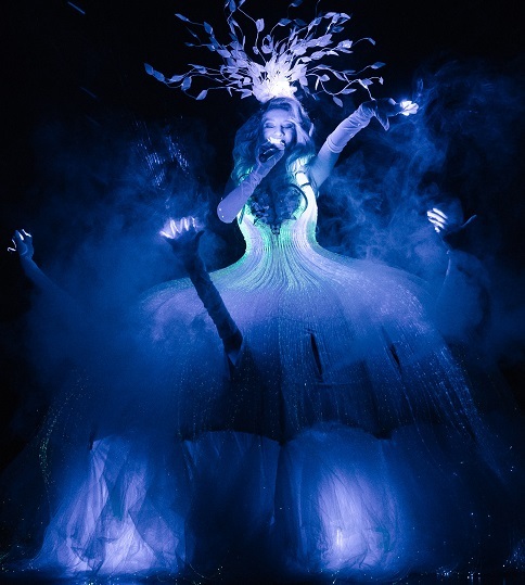 Дополнительные спецэффекты: танец руками из юбки, лазеры, встроенная в платье дым-машина